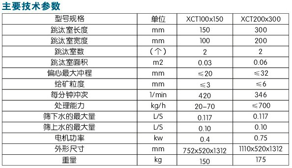 XCT型隔膜式跳汰機用于重力選礦,重力選礦是基于礦石的比重不同,在介質中沉降速度亦異,利用礦物重量上的差別,而完成礦;旌衔锏姆謱舆x別工作。本產品由原地礦部唯一指定企業生產,執行行業標準。  隔膜式跳汰機適于選別黑色和有色金屬、化學、建筑等方面的實驗研究之用。